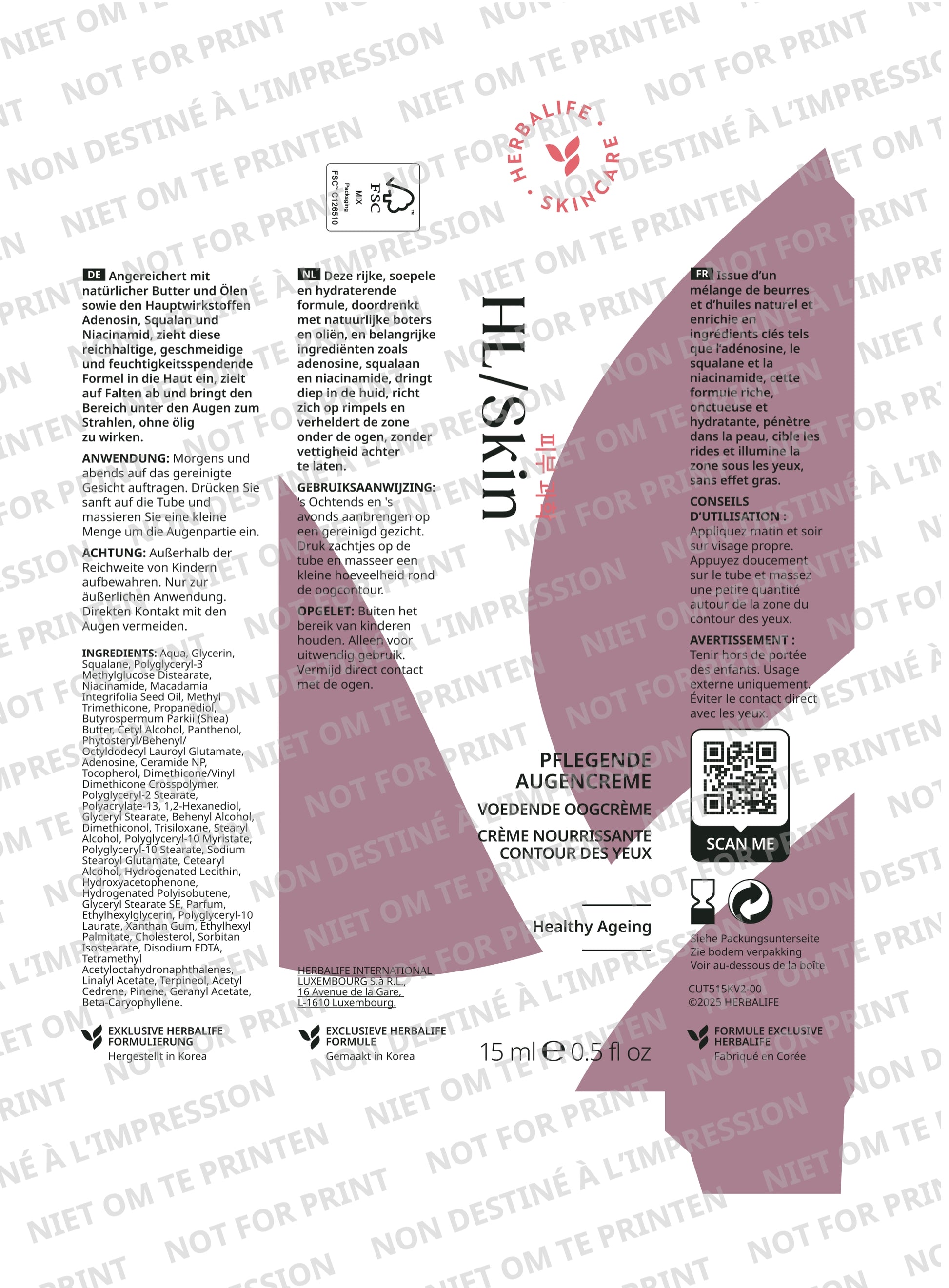 Diese leichte und schnell einziehende HL/Skin Pflegende Augencreme basiert auf der koreanischen Hautpflegewissenschaft und ist mit Adenosin, Niacinamid, Squalan sowie natürlichen Fetten und Ölen angereichert. Es bekämpft gezielt Fältchen, feine Linien und Trockenheit im empfindlichen Augenbereich. Es spendet langanhaltende Feuchtigkeit, hilft, die Feuchtigkeit zu binden und sorgt für ein glatteres und strahlenderes Erscheinungsbild. Nicht fettend und unter Make-up geeignet.